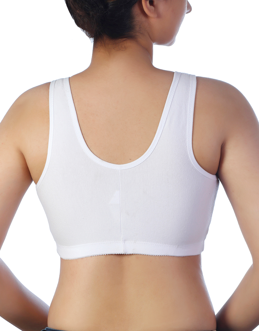 Baumwoll-Frontöffnung Slip-On Post-Operativer BH mit Taschen – Weiß