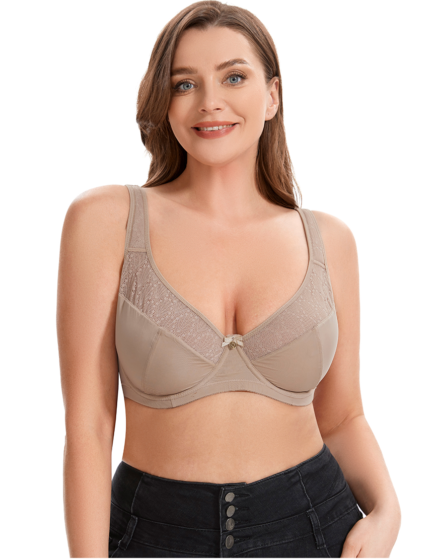 Losha Curvy Doppellagiger Minimizer-Bügel-BH mit Spitzendetail – Beige