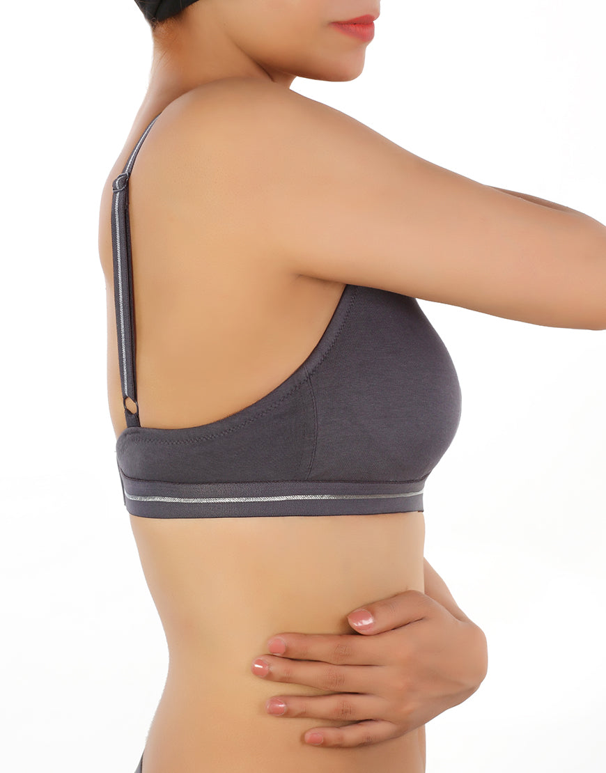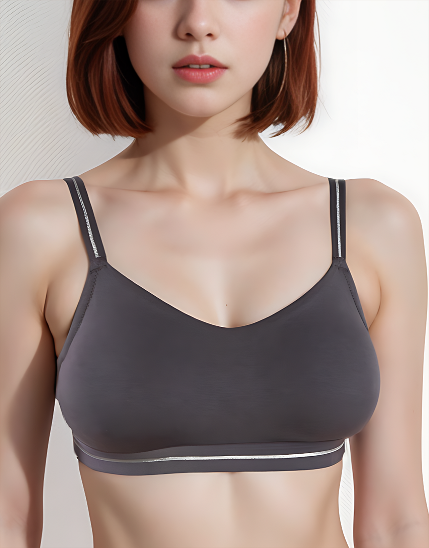 Doppellagiger Baumwoll-BH ohne Bügel mit Glitzer-Elastikbund – Grau