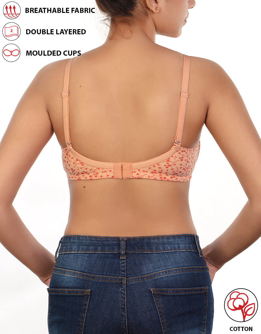 Baumwoll-BH, doppellagig, ohne Bügel, bedruckt – Lachsfarben