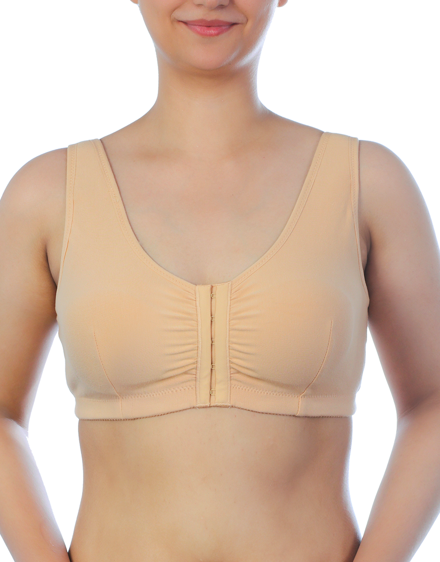 LOSHA Baumwoll-Frontverschluss Post-Operativer BH mit Taschen – Hautfarbe