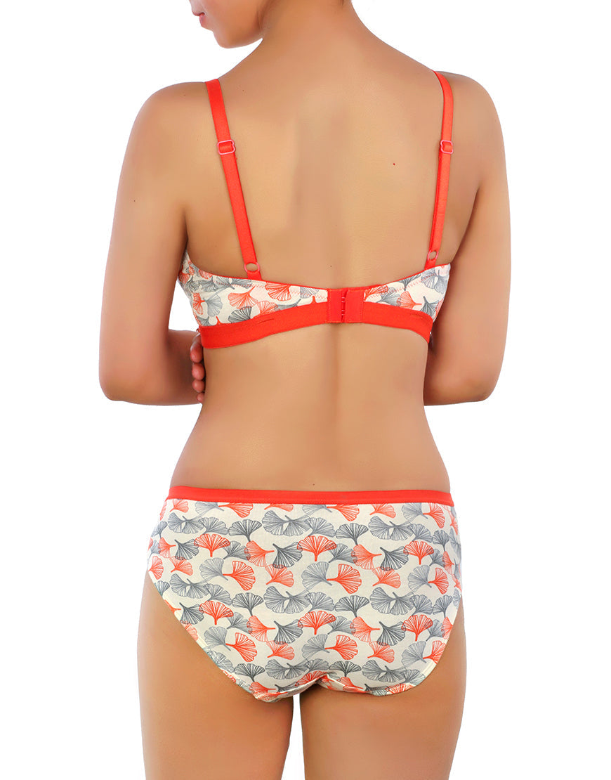 Doppellagiger Baumwoll-Wirefree BH mit passender Panty – Orange