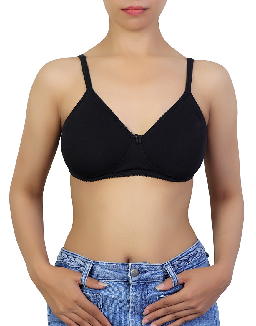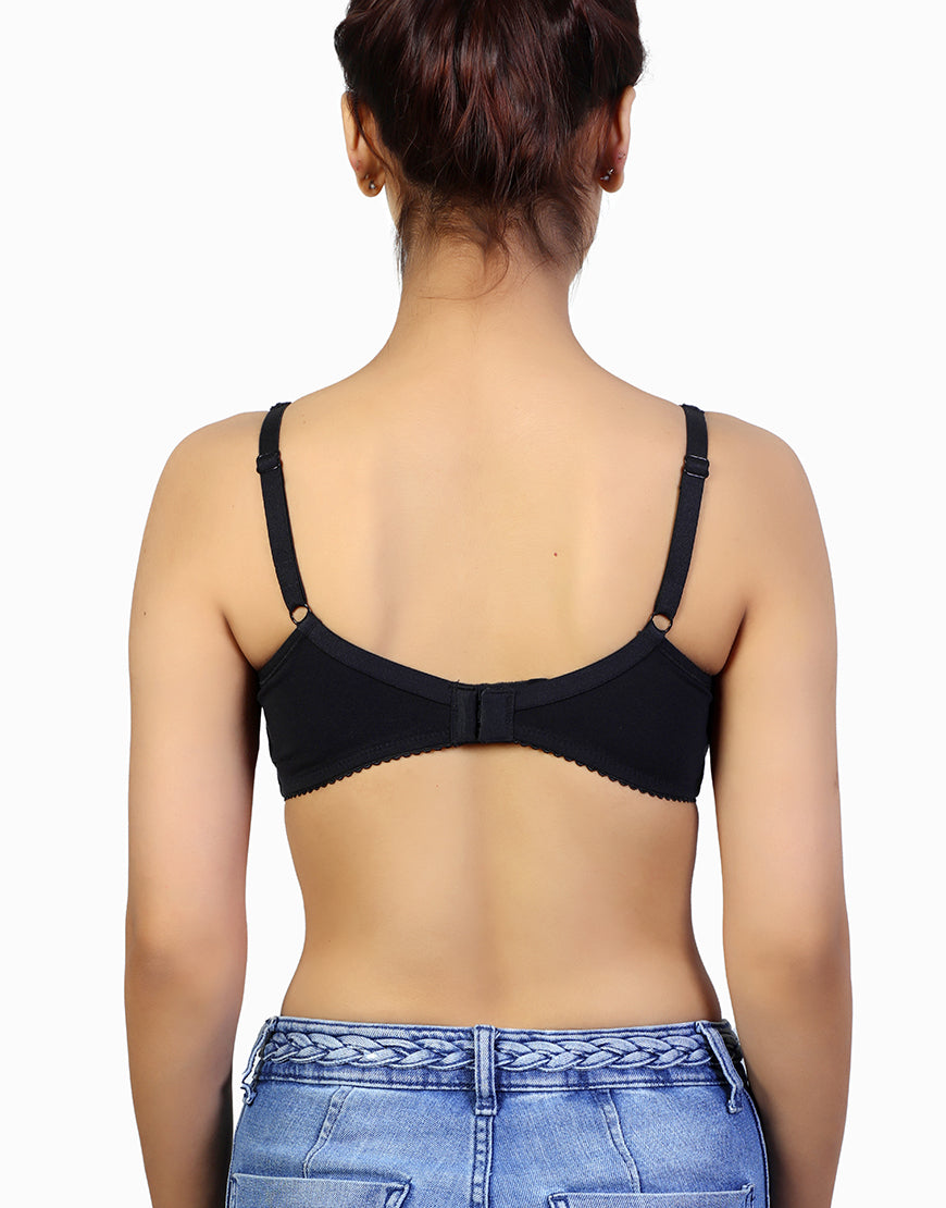 Superweicher Baumwoll-BH mit seitlicher Unterstützung und verstecktem Nippel-Cover – Schwarz