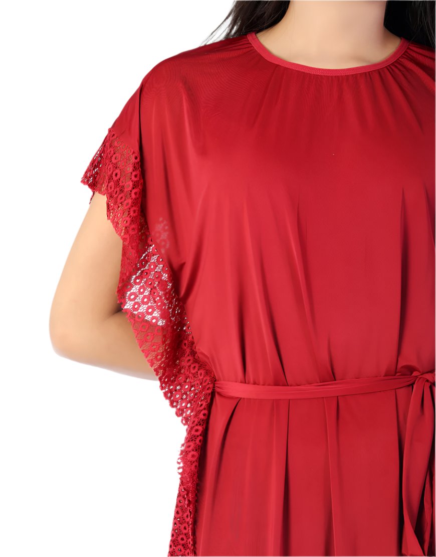 Zweiteiliges Nachthemd mit Rundhalsausschnitt und seitlicher Spitze – Maroon